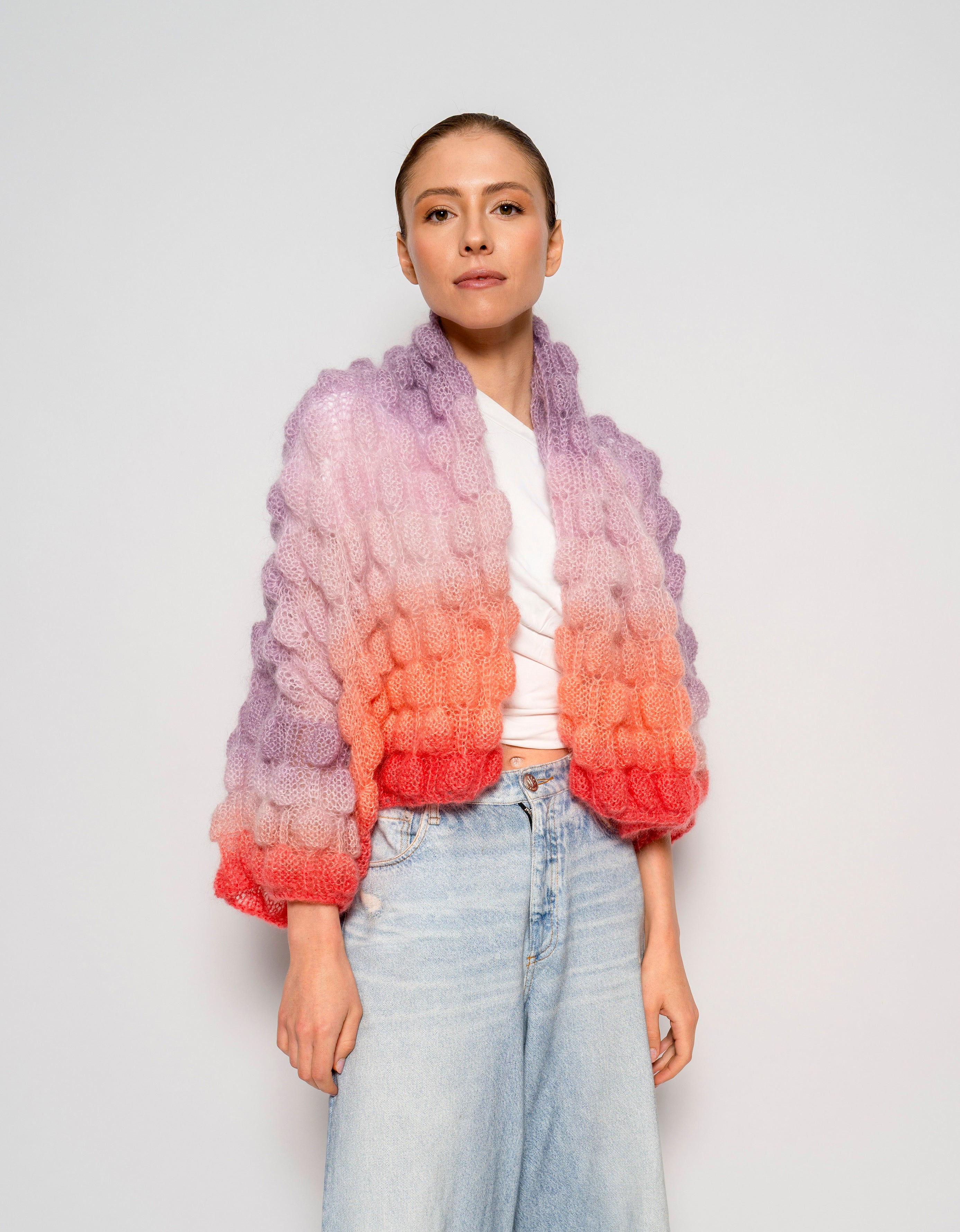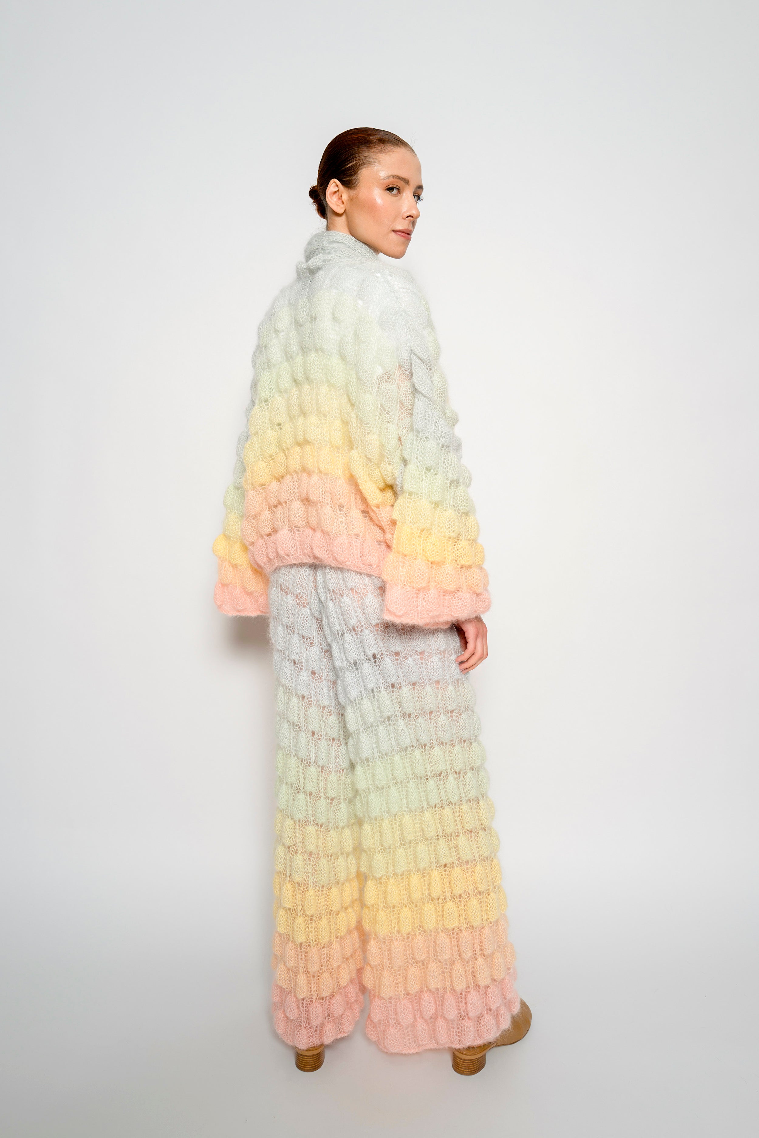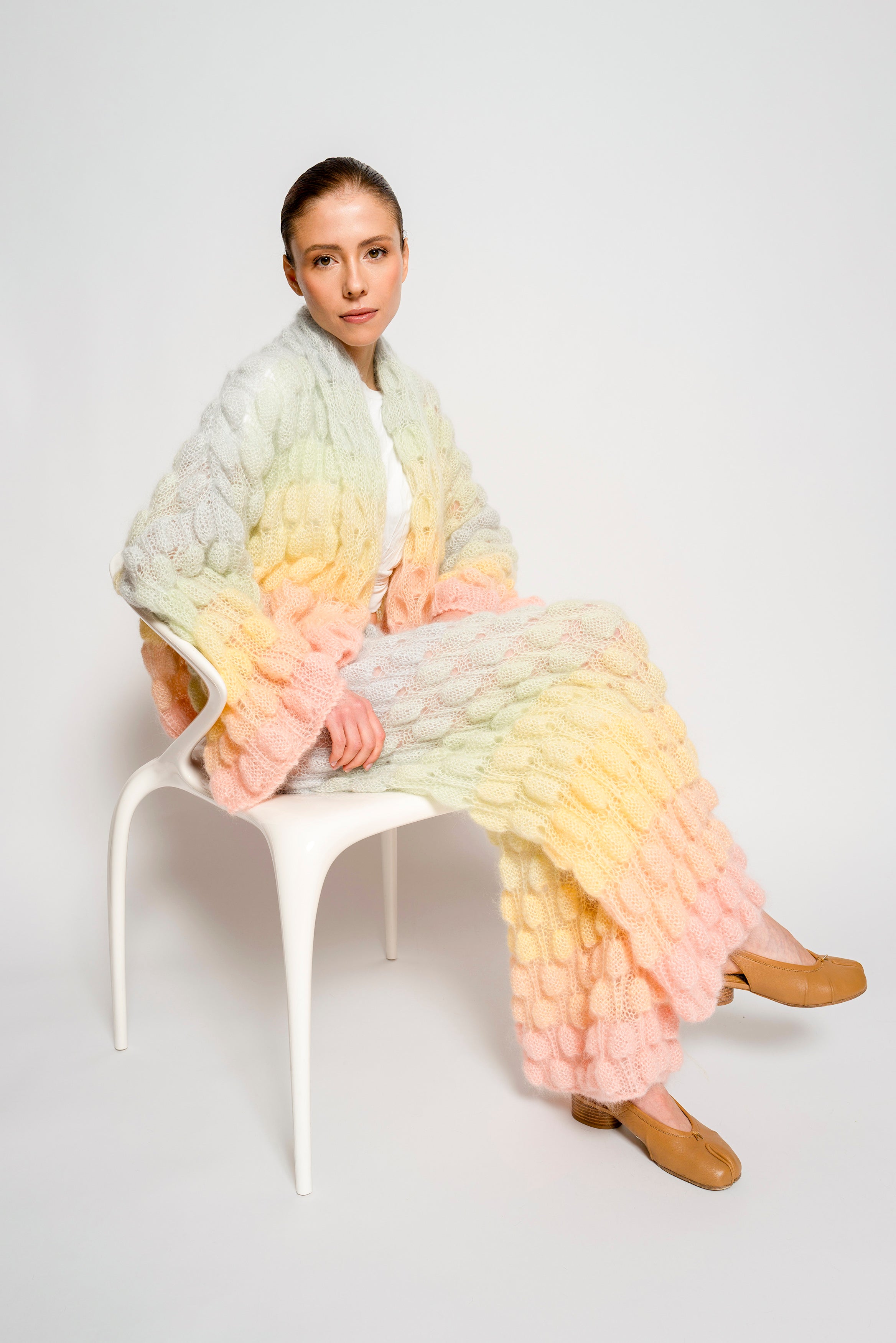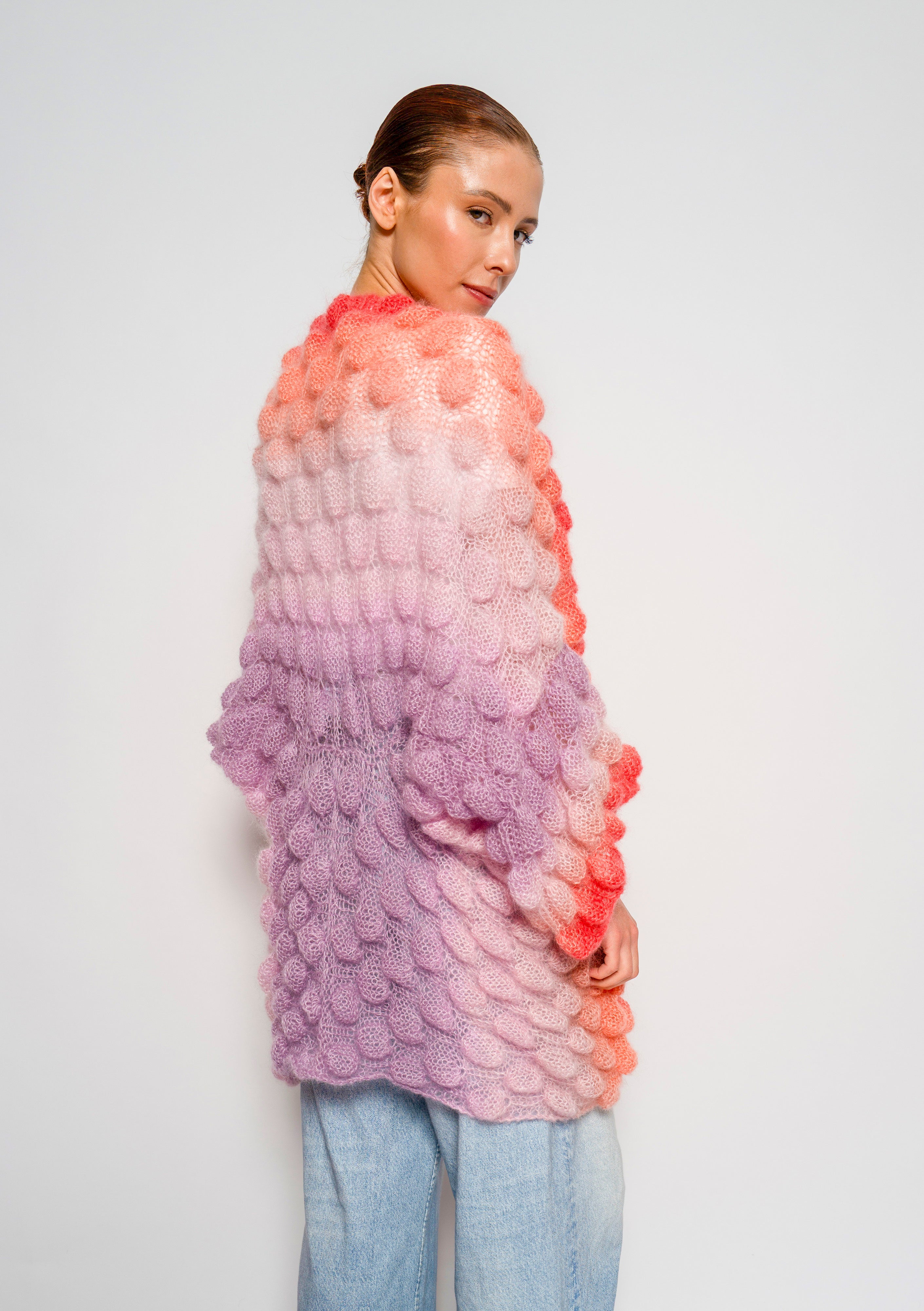Single Color Gradient option - The order of the gradient will go as followed: the main color will be the top of the coat, and blended towards the bottom of the coat into the color chosen in the single color gradient option. Please refer to Mini Zoe Cashmere coat