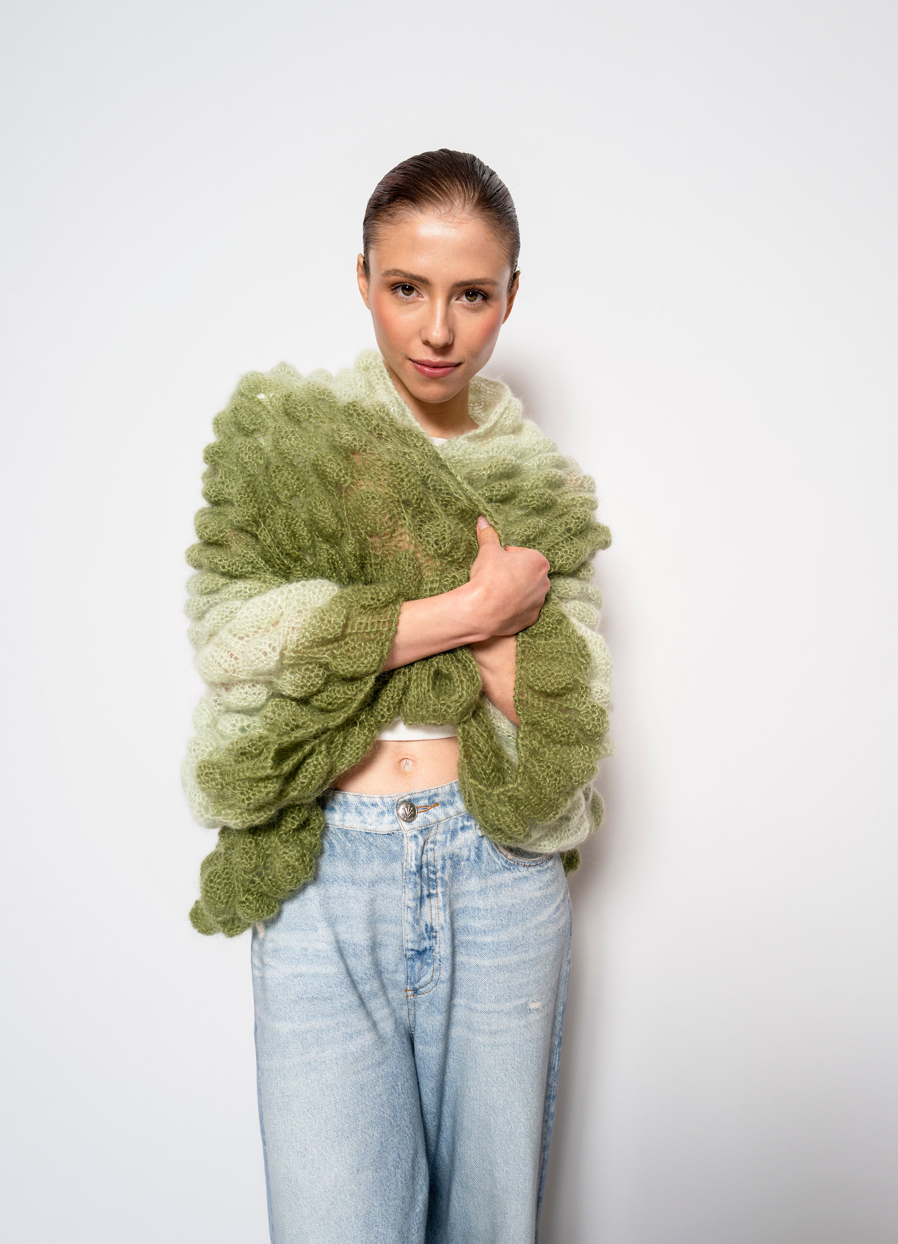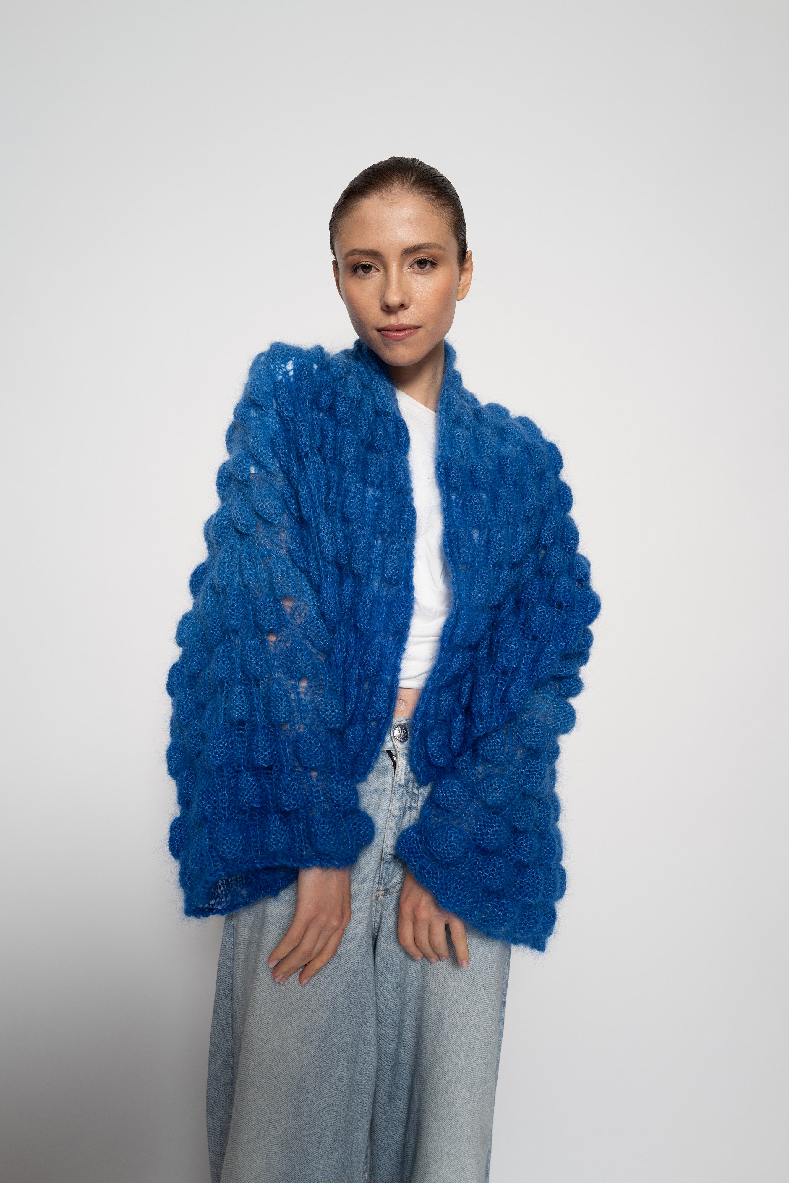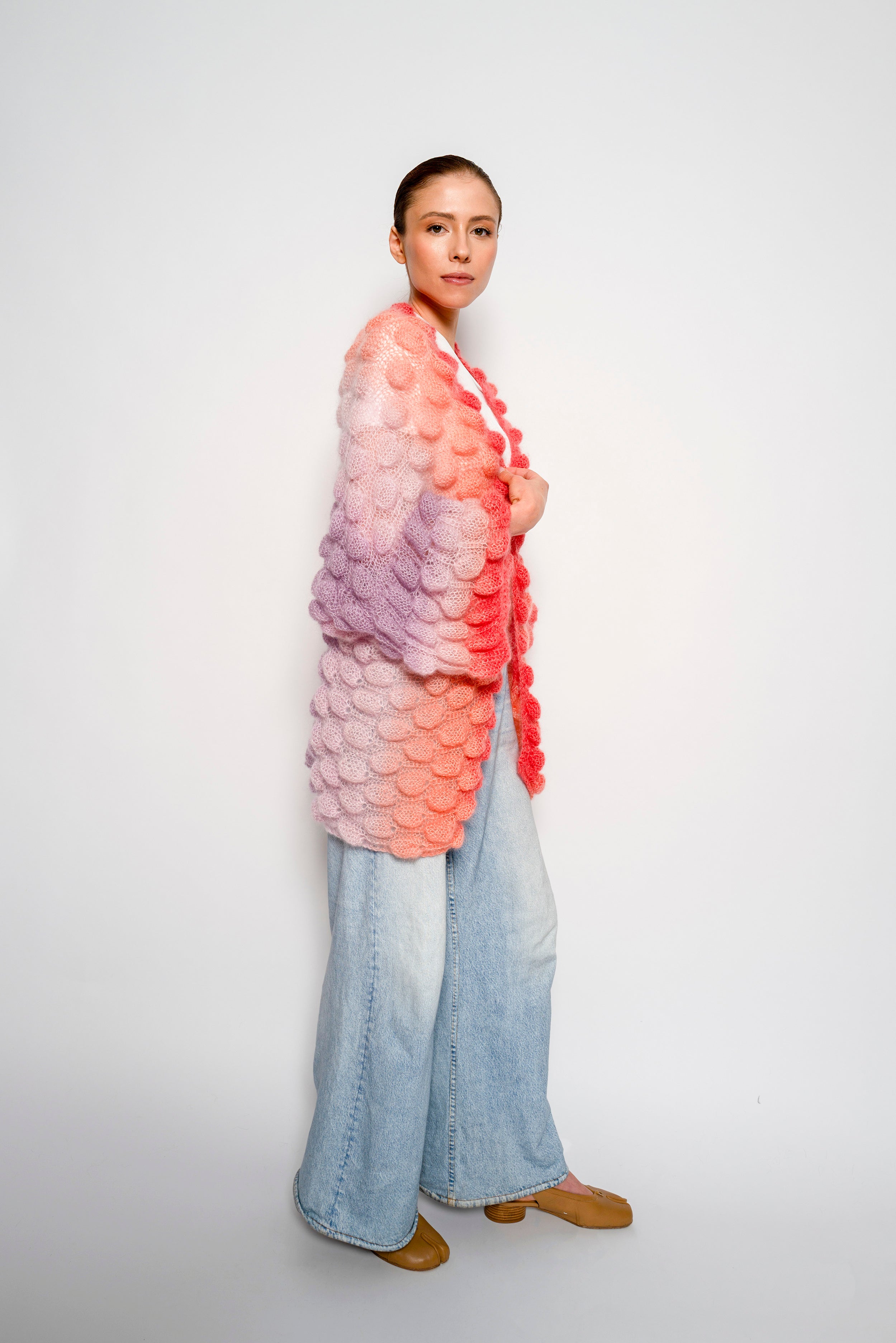 All of our Lace, Mohair and Silk coats are made with 75% Baby Mohair 25% Silk.